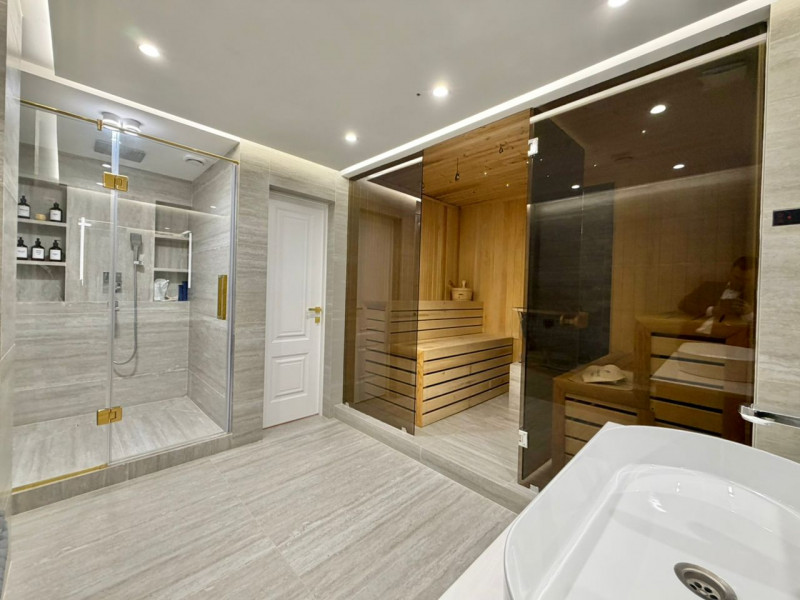 3 уровня, 6 комнат, из них 4 спальни, просторная гостиная, 2 кухни (основная и техническая), тренажерный зал, 4 санузла и шикарная финская сауна. Участок благоустроен: летняя и зимняя беседка, очок кана, навес на 3 машины и большое количество гостевых парковочных мест. Выполнен ландшафтный дизайн с системой автополива.