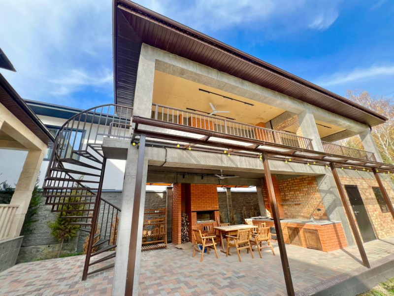 Продается современный и качественно построенный особняк в селе Кок-Жар, район Магистраль / Алматинская. Дом общей площадью 350 кв.м расположен на участке 10 соток, с возможностью расширения до 20 соток. Планировка включает 4 просторные спальни, 3 ванные комнаты, большую гостиную с выходом на террасу, кухню и холл. Все коммуникации центральные, канализация — септик, отопление газовое с тёплыми полами. Участок благоустроен: двухуровневая терраса, баня, солевая комната, навес на 3 автомобиля, водяной накопитель на 5 тонн. Дом 2019 года постройки, утеплён, фасад выполнен из натурального Сары-Таша. Все документы в порядке.