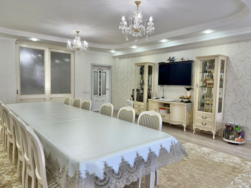 Продается просторная 5 комнатная квартира в золотом квадрате, перекресток Токтогула / Панфилова, от застройщика «Елизавета». 2минуты до площади Ала-Тоо и Бульвара Эркиндик. Квартира расположена на 5 этаже, общей площадью 192 м2, продается с мебелью и всей техникой. Выполнен качественный ремонт: 4 уютные спальни, 3 санузла, большая светлая гостиная и отдельная кухня. Дом давно сдан, техпаспорт на руках.