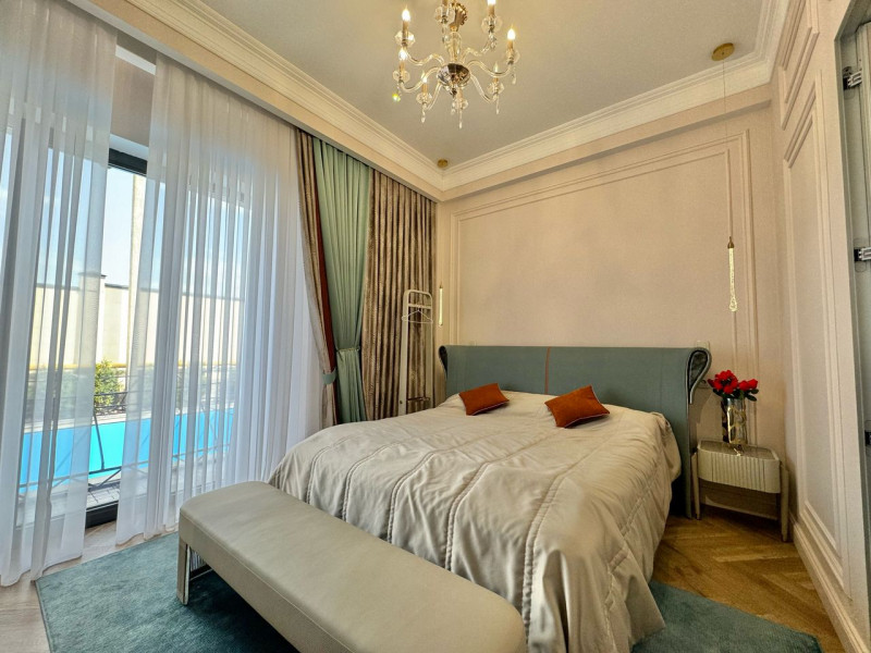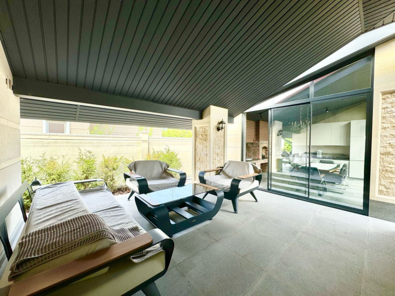 Продается роскошный дом в VIP-городке ОРДО с круглогодичным бассейном. Насладитесь современной роскошью в этом одноэтажном доме с идеальной планировкой: 4 спальни, 2 ванные комнаты, просторная гостиная с обеденной зоной, кухня, прачечная, терраса, зона барбекю и подогреваемый бассейн. Каждая спальня оснащена собственной ванной и встроенными шкафами. Мастер-спальня — с большой гардеробной и роскошной ванной. Участок — 8 соток, дом — 220 кв.м.
