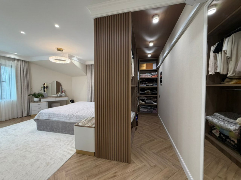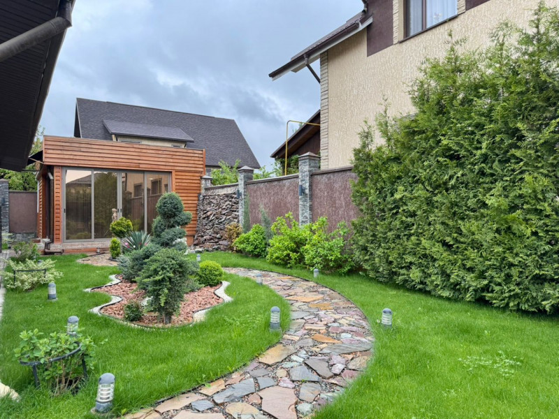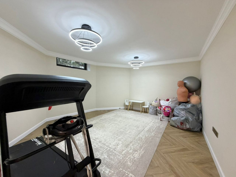 3 уровня, 6 комнат, из них 4 спальни, просторная гостиная, 2 кухни (основная и техническая), тренажерный зал, 4 санузла и шикарная финская сауна. Участок благоустроен: летняя и зимняя беседка, очок кана, навес на 3 машины и большое количество гостевых парковочных мест. Выполнен ландшафтный дизайн с системой автополива.