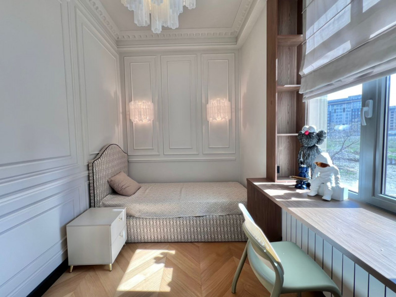 Выполнена в стиле французской классики, редкий и дорогой дизайн. Полностью укомплектована мебелью и техникой, все продумано до мелочей. Лучше один раз увидеть вживую — звоните и приходите на показ.