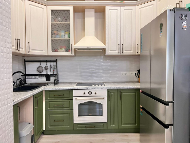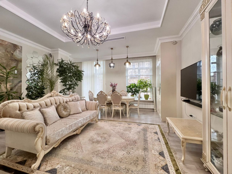 Малоквартирный дом в тихом и престижном месте, отличный вариант для личного проживания. Общая площадь — 86,8 м², 1 этаж. Квартира с ремонтом и частично меблирована: 2 спальни, просторная гостиная с кухней, 2 санузла, гардеробная и балкон. В стоимость также входит собственный наземный гараж.
