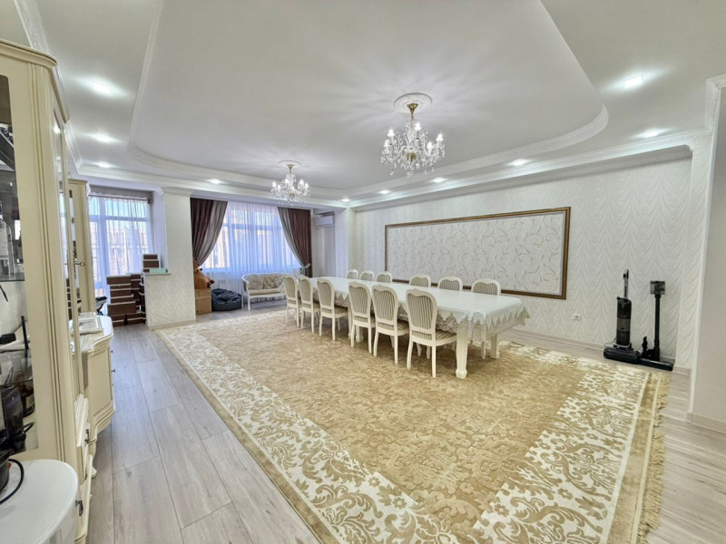 Продается просторная 5 комнатная квартира в золотом квадрате, перекресток Токтогула / Панфилова, от застройщика «Елизавета». 2минуты до площади Ала-Тоо и Бульвара Эркиндик. Квартира расположена на 5 этаже, общей площадью 192 м2, продается с мебелью и всей техникой. Выполнен качественный ремонт: 4 уютные спальни, 3 санузла, большая светлая гостиная и отдельная кухня. Дом давно сдан, техпаспорт на руках.